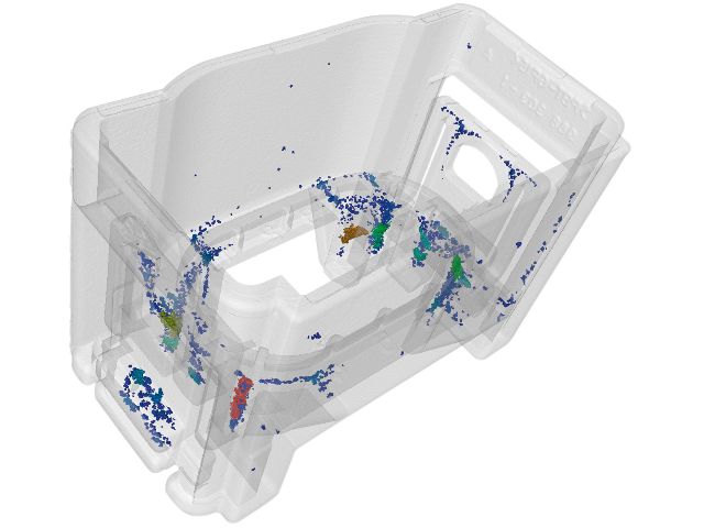 通过色差比较可以看到与CAD模型或主要部件的偏差。